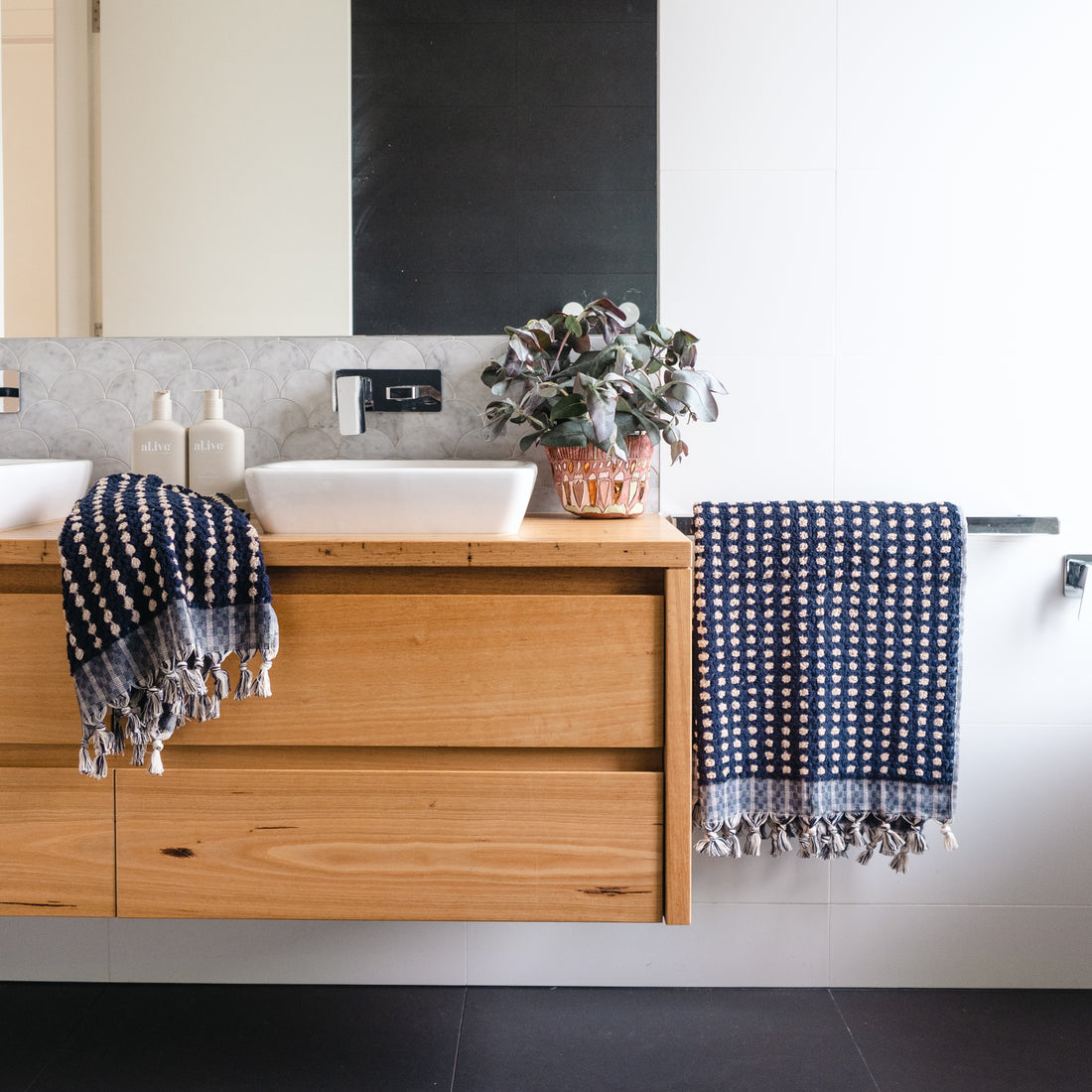 THIRSTY TOWEL CO. - Indigo and White Pom Pom Turkish Cotton Hand Towel