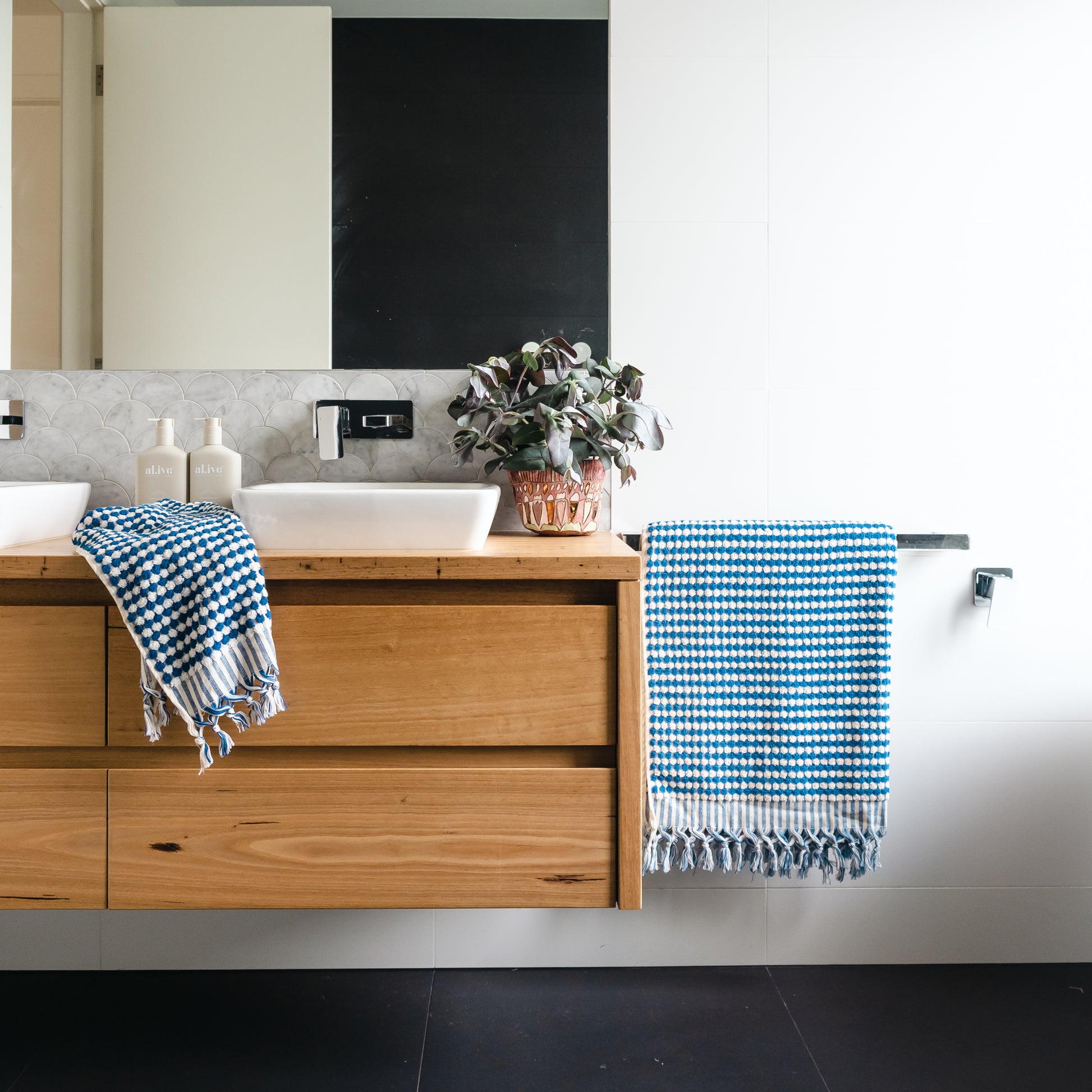This super-soft Indigo and White Dots Turkish Hand Towel is thick, heavy, and quick dries and highly absorbent.