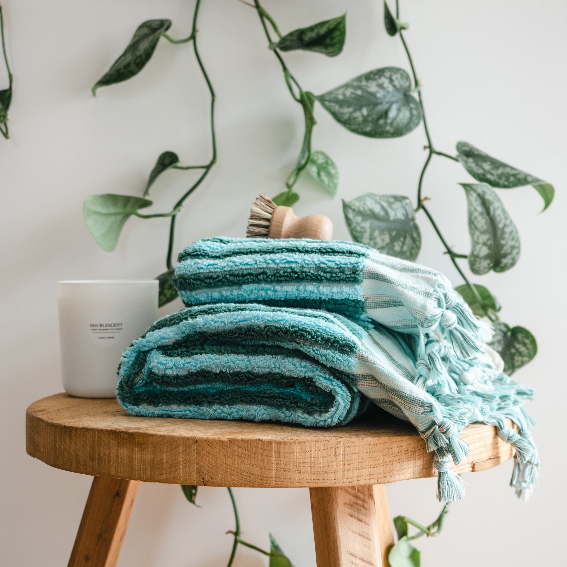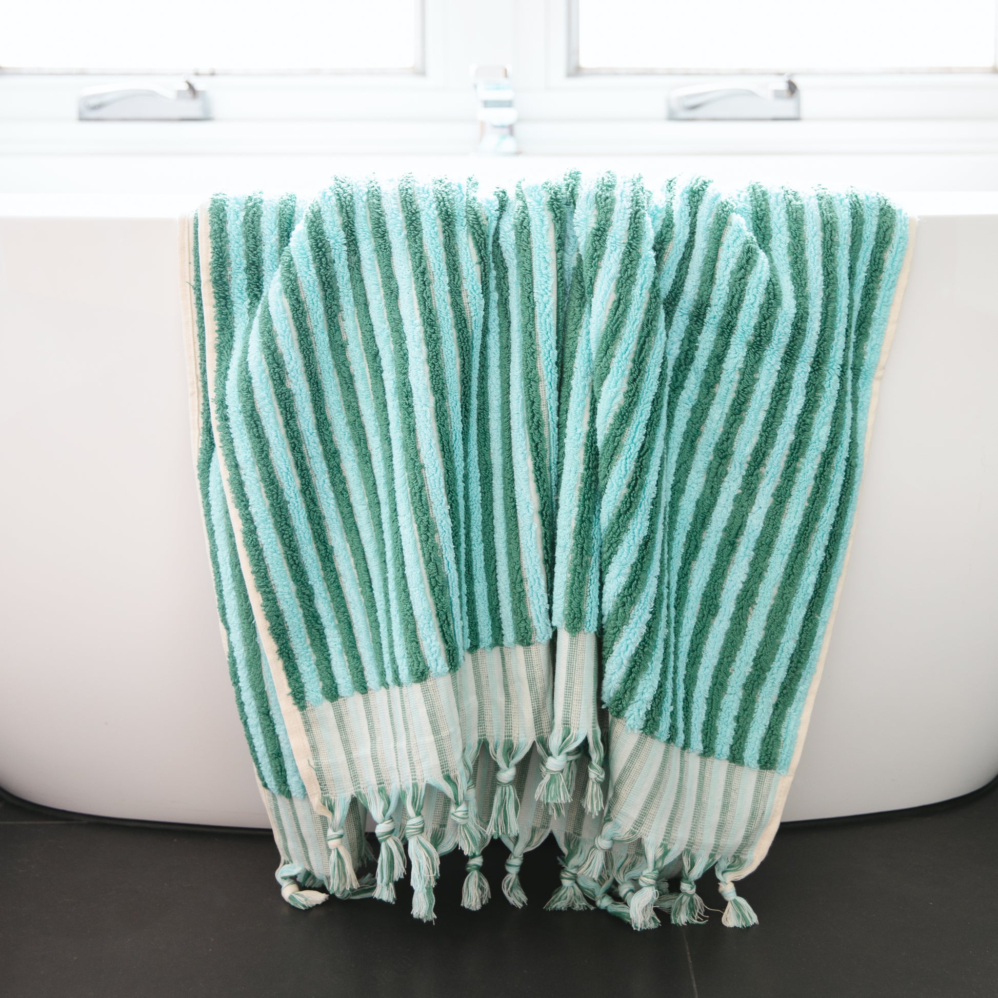 'Blue Hawaiian' Stripe Turkish Bath Towels are so fluffy and cosy because of their looming