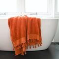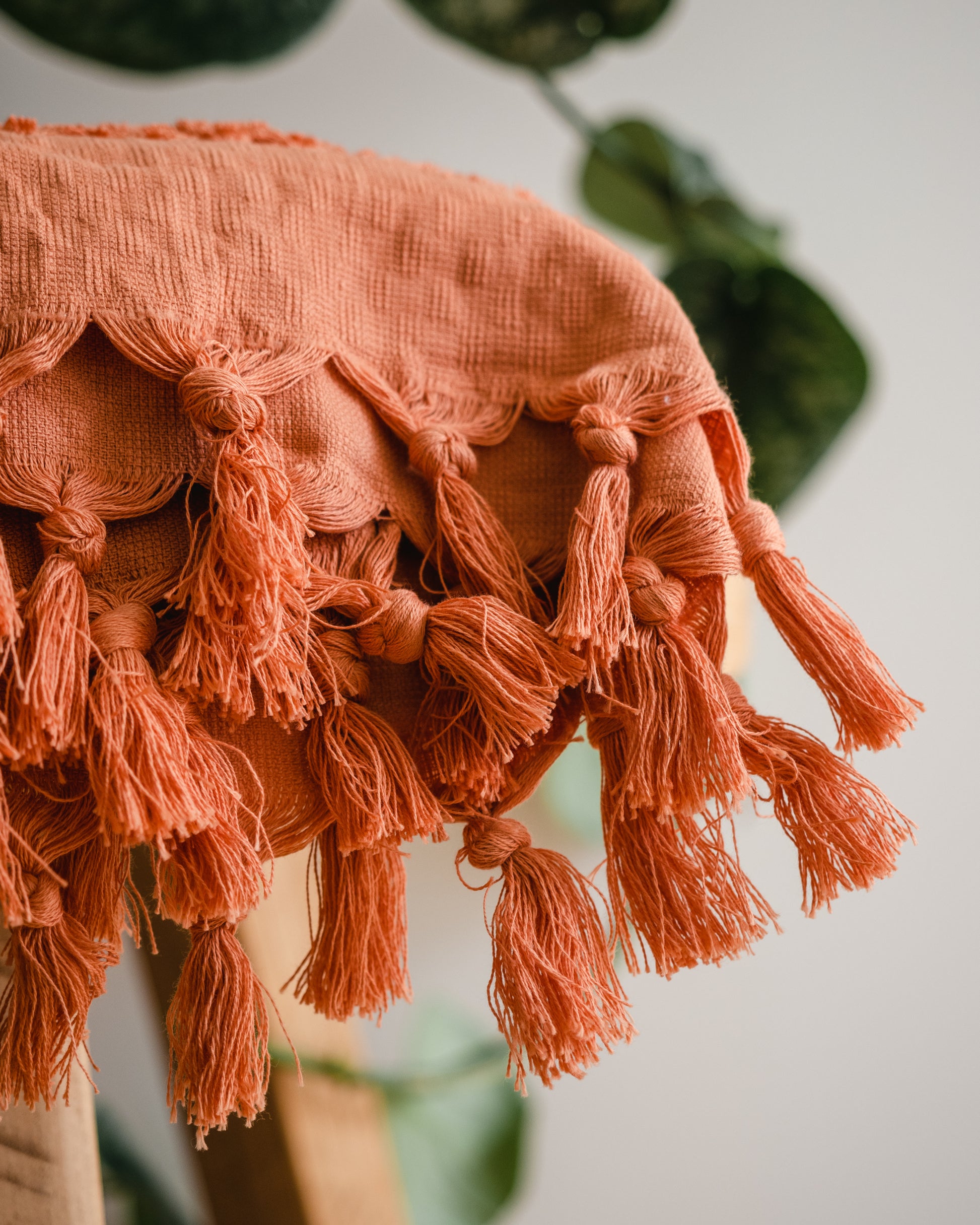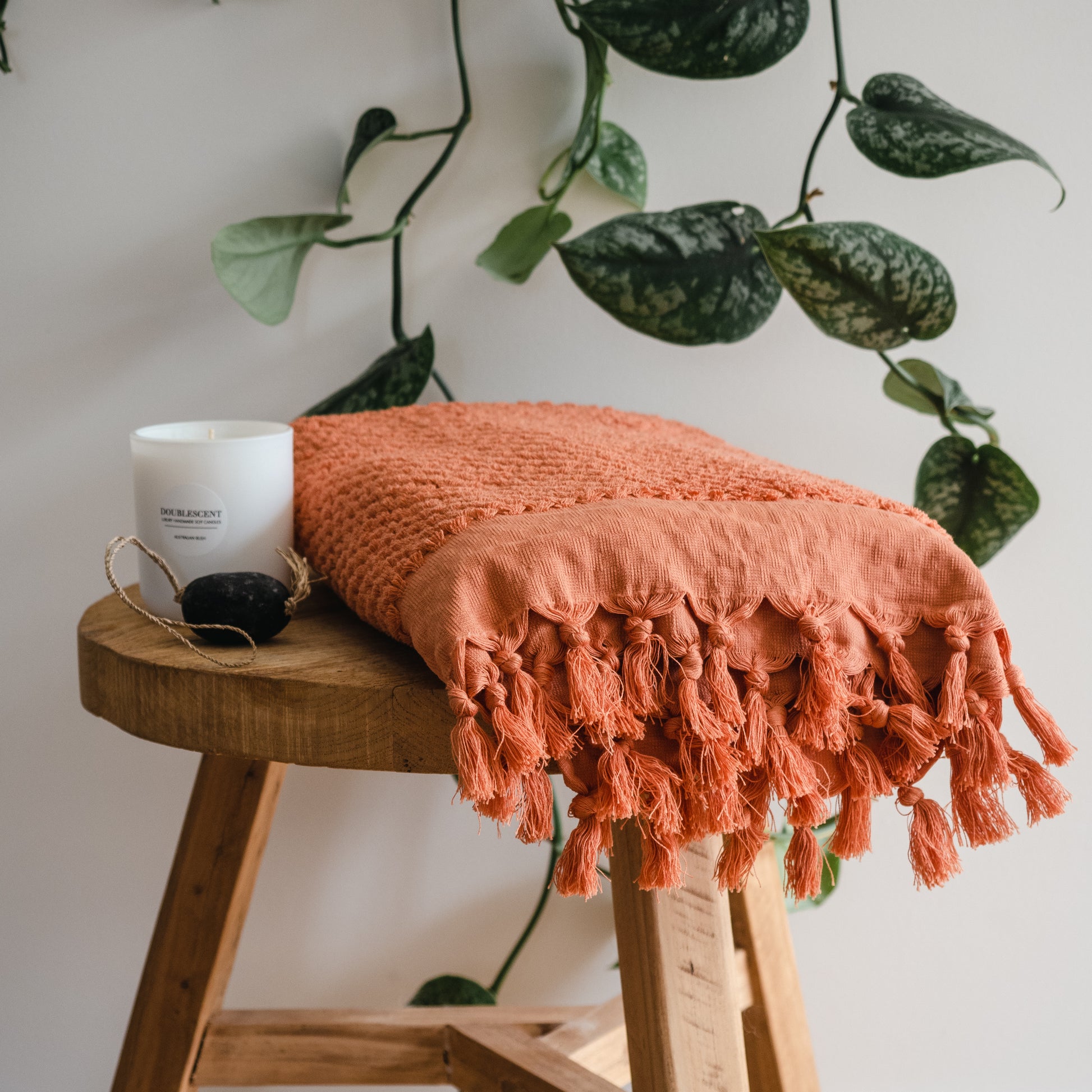 They are so fluffy and cosy because of their looming technique. They feature terry weaving on both sides and tear-resistant strength. After they are woven the tassels are tightened by a unique hand rolling method. It is the natural woven textile feature that makes these towels extremely durable.