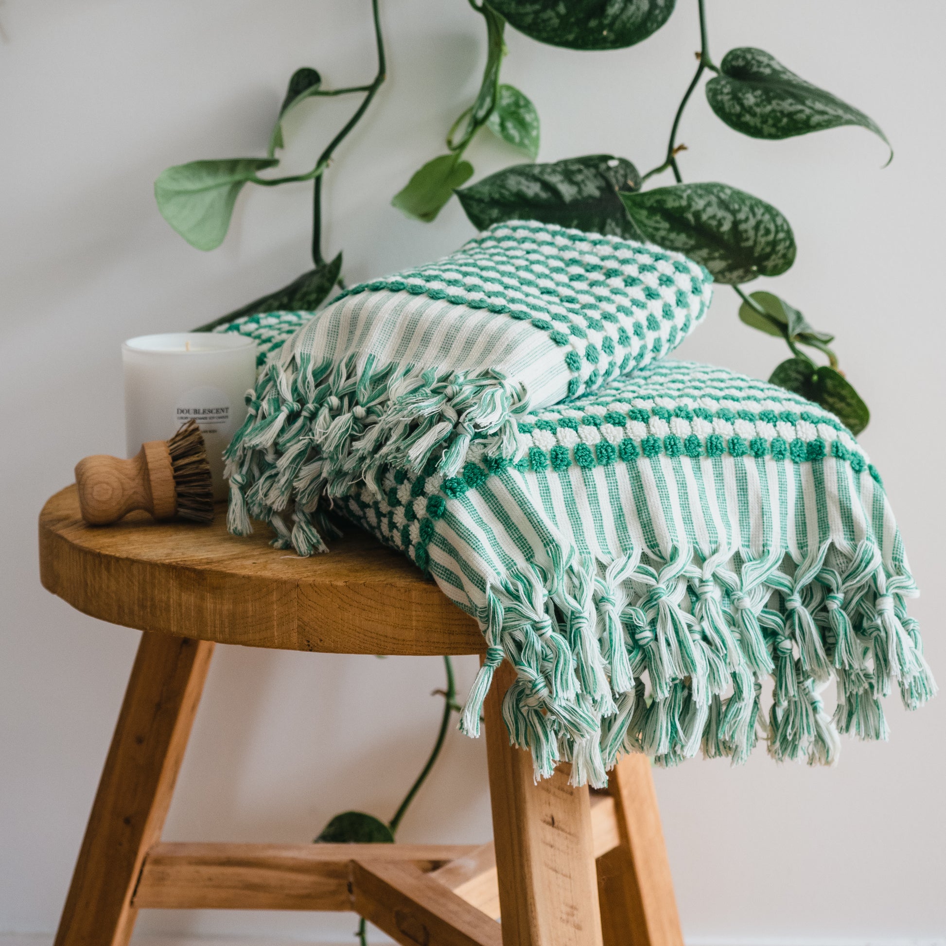 Experience the High-Quality THIRSTY TOWEL CO. MINTIES Pom Pom Turkish Bath Sheet Towel Limited Edition with 100% Cotton.