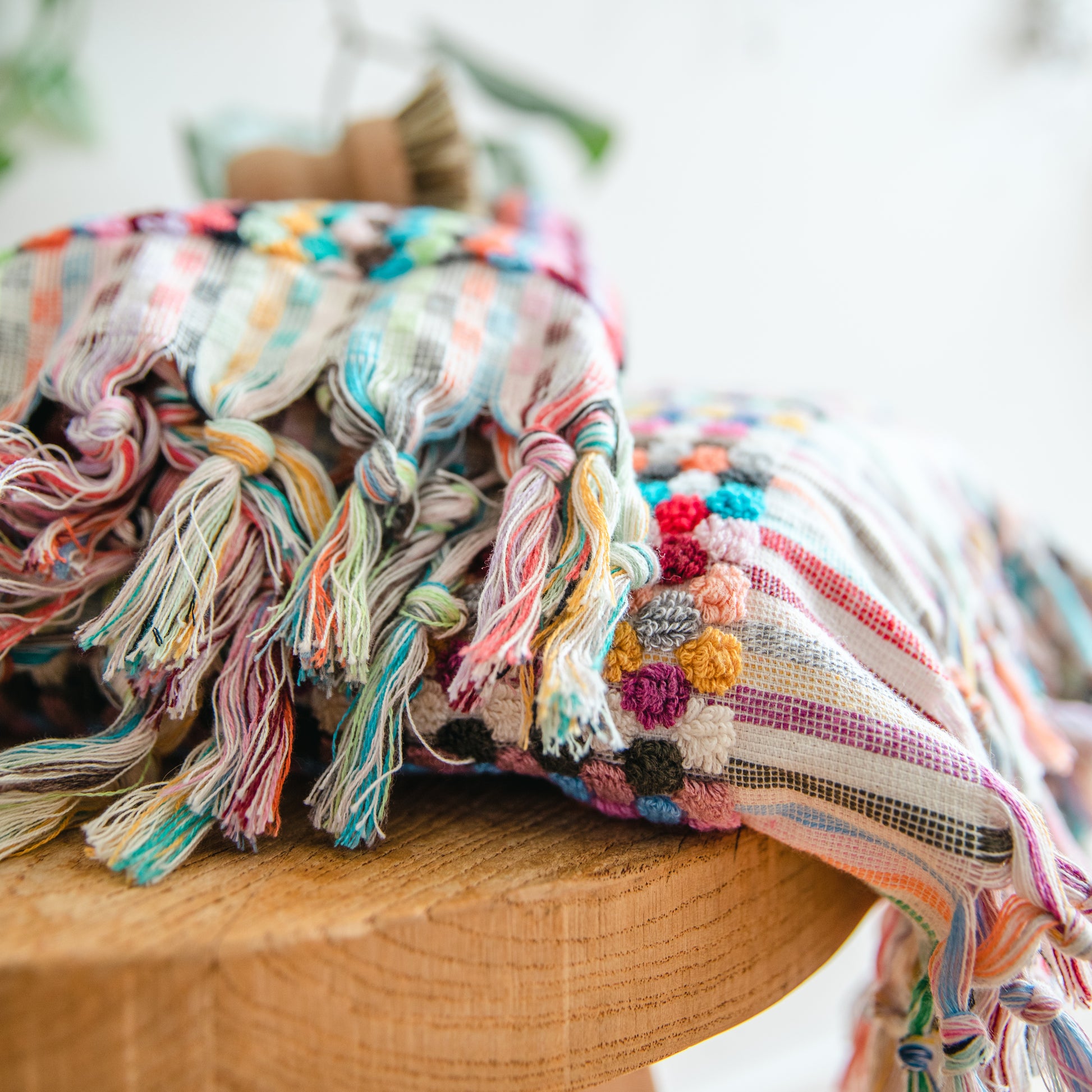 All of our SPRINKLES Turkish Cotton Pom Pom Hand Towels are handmade in Turkey.